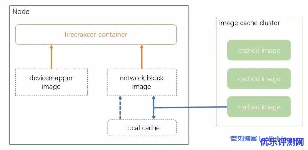 另外,为了解决新镜像拉取缓慢导致的容器实例启动慢的问题,容器团队提出了镜像远程挂载的解决方案。将容器镜像以块设备的形式存储在缓存集群,当需要在此镜像上生成容器实例时,先将容器镜像通过远程挂载的形式挂载到宿主上,然后容器运行时会在宿主上创建一层可写层生成容器实例。同时后台会将远程镜像同步到宿主本地,进一步加速读取,降低集群风险。上述方法可使宿主上首次获取镜像的时间缩短至3s以下,并有进一步优化空间。目前这一功能以镜像缓存的产品形式提供给用户使用,并正在逐步整合到普通镜像拉取过程中。