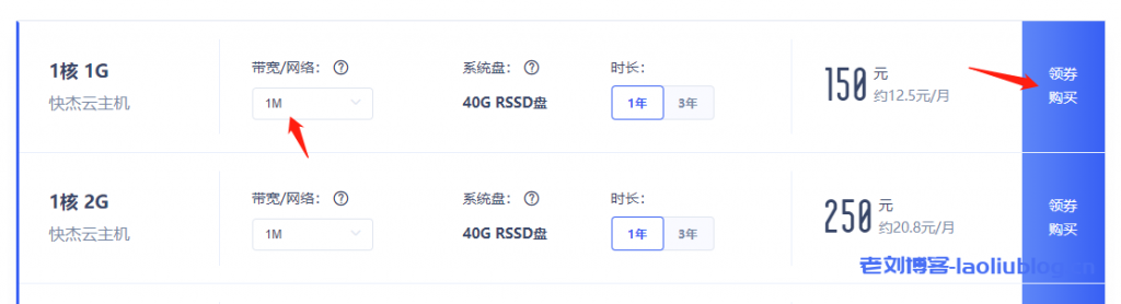 购买流程大同小异,之前老刘也有写过《UCloud优刻得快杰云主机88元一年购买图文教程》内容很详尽,只是这里换了机器配置和活动地域。以下就有区别的地方作下介绍,其他的可以参考88元快杰云主机的购买教程。