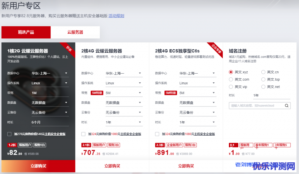 华为云828企业上云节正如火如荼地进行中,老刘博客前文《华为云828企业上云节新用户注册送8280元优惠券》又讲,此次活动华为云针对新用户免费发放10张共计8280元华为云优惠券。具体到云产品,华为云更是折扣到底,如云耀云服务器,香港服务器,ECS独享型C6s,域名注册和SSL证书,以及cdn加速流量包等,超低价给到新用户,立即前往活动现场>>