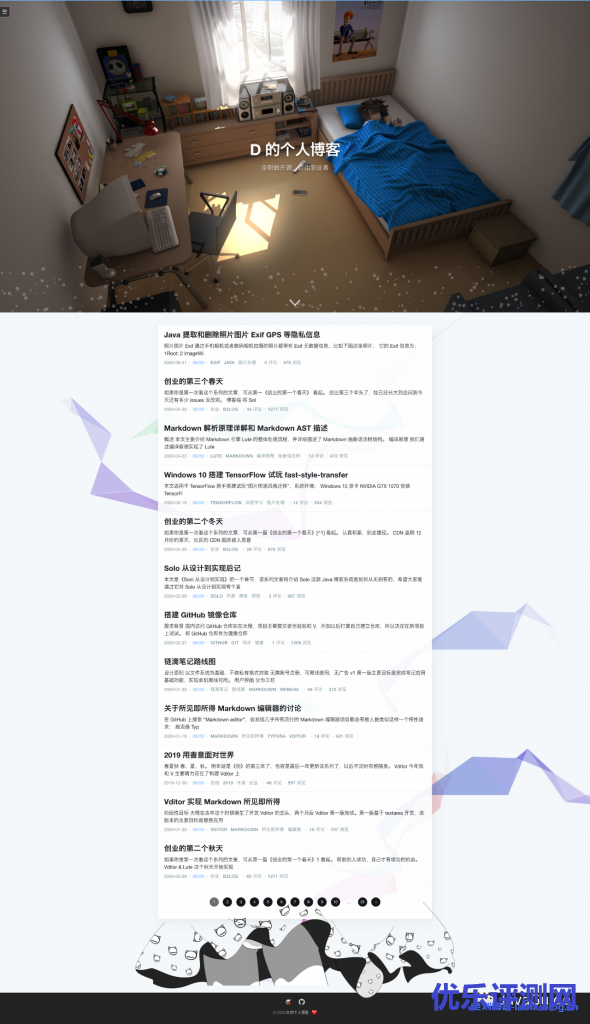 - 评价 :OneBlog,我个人比较喜欢的一款博客样式类型(不过,需要花更多时间自定义和完善。没精力折腾的,慎入!),自带评论系统、SEO 等功能。比较适合做知识沉淀类网站。