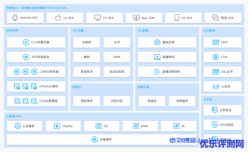 云直播(CSS)依托腾讯强大的技术平台,为用户提供专业稳定快速的直播接入和分发服务,具有低延迟、高安全、高性能、易接入、多终端、多码率支持等特点,并提供腾讯自研的推流 SDK 和播放器 SDK,方便客户端定制自己的推流端和播放端 App。
