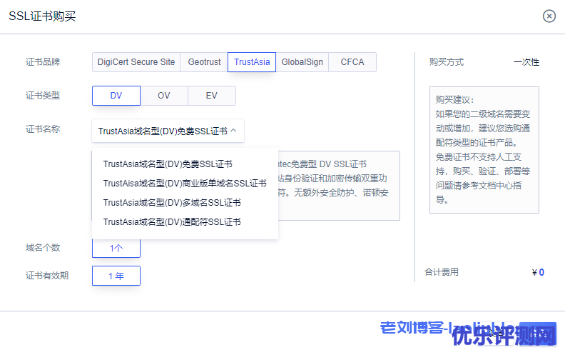 如果需要免费SSL证书也可参考老刘博客前文《网站启用https:UCloud优刻得免费SSL证书申请与部署流程》,但也不要忘了《网站https加密不建议使用免费SSL证书的四大理由》,需要性价比超高便宜SSL证书参见《优刻得TrustAsia域名型商业版单域名SSL证书只要168元》。