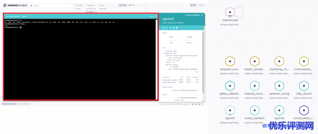 Weave Scope与Docker、Kubernetes、分布式云操作系统(DC/OS)和AWS Elastic Compute Cloud(ECS)无缝集成起来。它提供了完整的视图,直观显示了服务器上的进程、容器和主机,可控制已安装的应用程序。