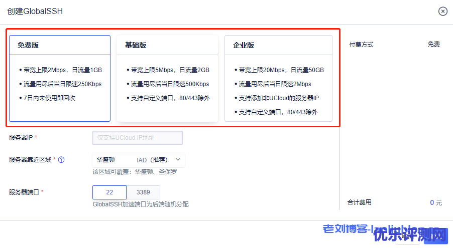 老刘博客前文多处有提到过UCloud优刻得GlobalSSH产品,如《解决SSH登录连接慢,优刻得GlobalSSH产品让海外SSH访问不卡顿》,《UCloud免费GlobalSSH产品跨国网络加速使用教程》等,昨天老刘留意到UCloud优刻得控制台最新上线了GlobalSSH新版本,划分免费版,基础版和企业版三个版本,支持修改加速端口,支持加速非UCloud IP,老刘博客本文将具体介绍GlobalSSH新版本特性。