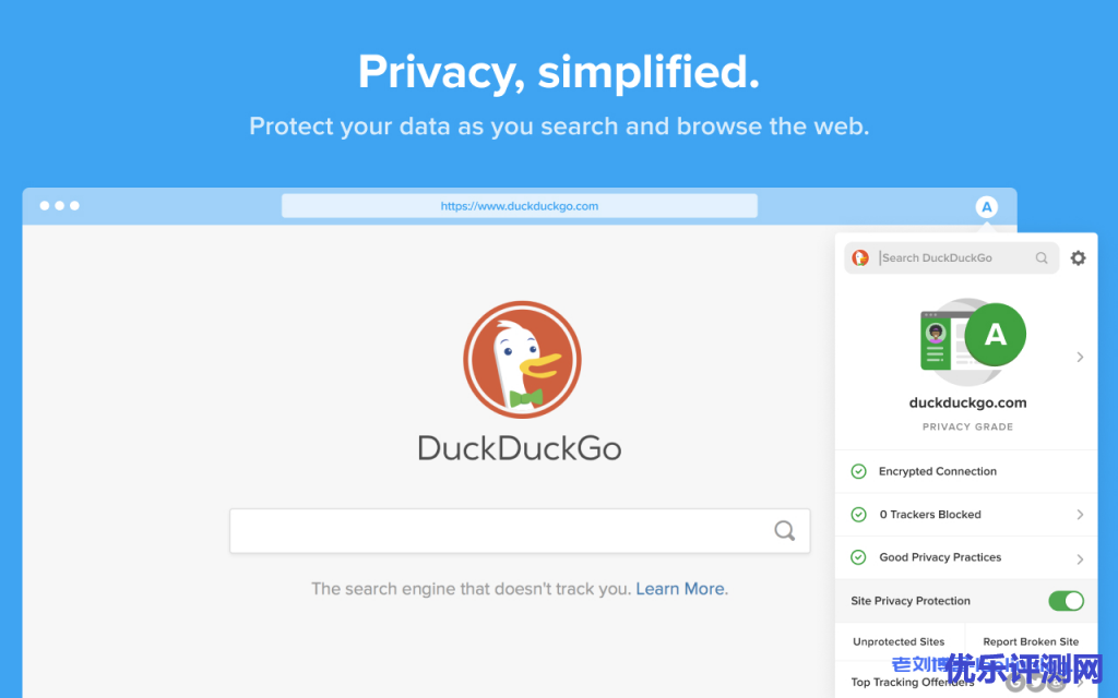 DuckDuckGo插件的作用是保护个人隐私,当我们在进行搜索和浏览时,能够让我们时刻掌控个人的信息安全: