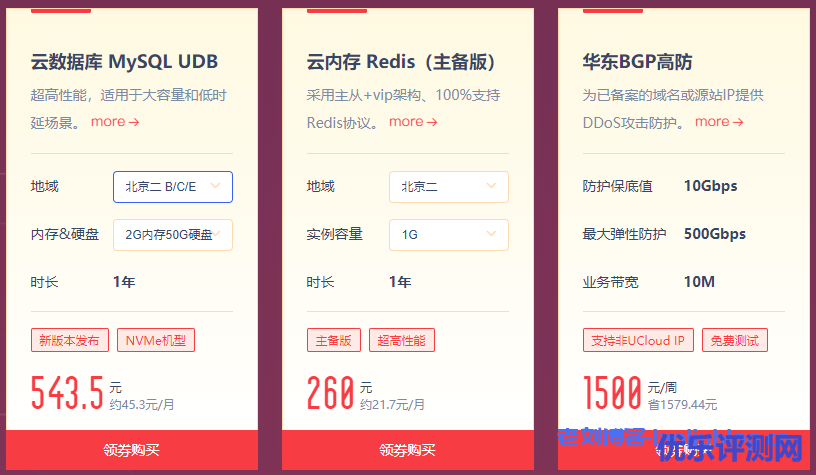 前文老刘博客提到UCloud优刻得年度大促准备了快杰云主机首购5元/月起,CDN国内加速流量包100GB只要1元,除了域名,SSL证书等必备云产品,UCloud也准备了NVme机型云数据库(快杰UDB MySQL)以及云内存Redis主备版参加此次年度促销活动,其中作为UCloud新上线的云数据库产品快杰UDB MySQL,也是首次参与促销,折扣低至2.2折。