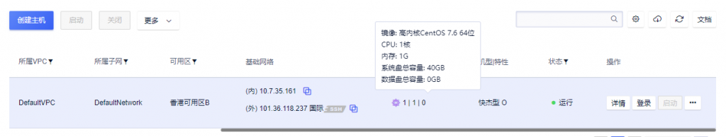 按照UCloud年度大促活动中要求的促销机器,按时付费购买了UCloud香港可用区B的1台快杰云主机,测试机具体配置信息如下,外网IP是101.36.118.237。