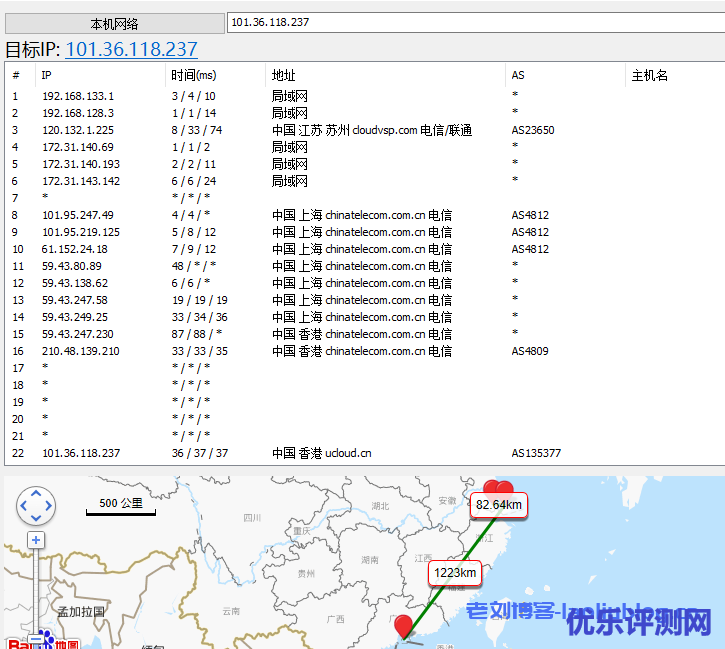 本次用电信网络测试了UCloud优刻得香港快杰云主机去程线路,回程线路暂未测试。妥妥的香港CN2线路,同时从前文《UCloud香港VPS评测:电信双向香港CN2,移动和联通走联通直连》知,香港快杰云是电信双向香港CN2,移动和联通走联通直连。