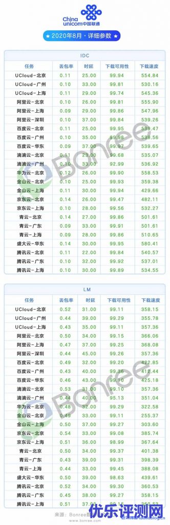 此榜主要反应在中国联通运营商覆盖下,各云平台在网络稳定和传输质量上的表现。