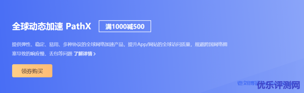 敲黑板!据老刘博客发现,我们可以在UCloud官网领两次全球动态加速PathX满1000减500元代金券。