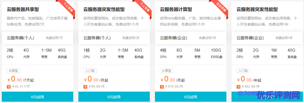 老刘博客这里推荐下图中云服务器突发性能型,毕竟是免费使用1年的,适用轻量级网站、低负载应用场景,个人开发者建站必备,免费试用1年。
