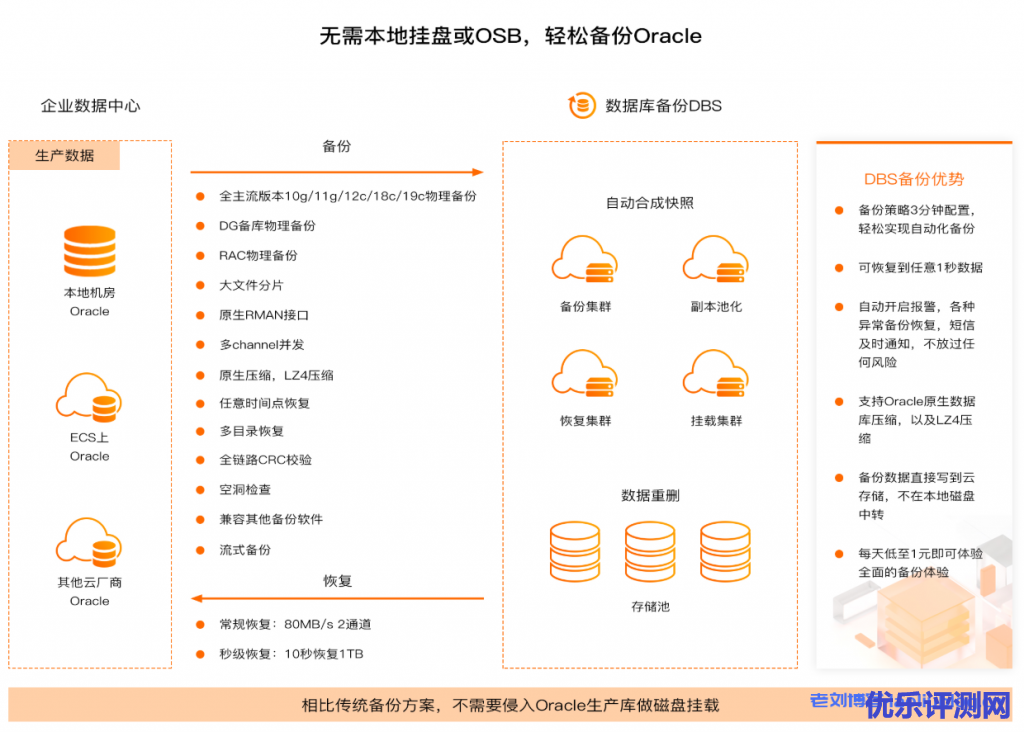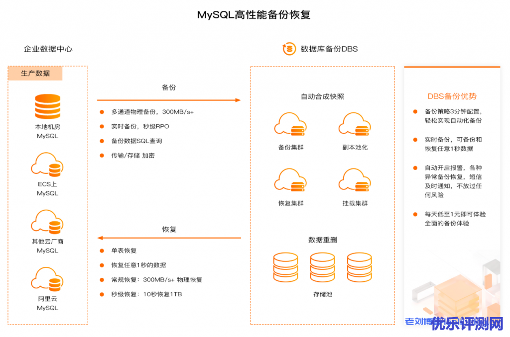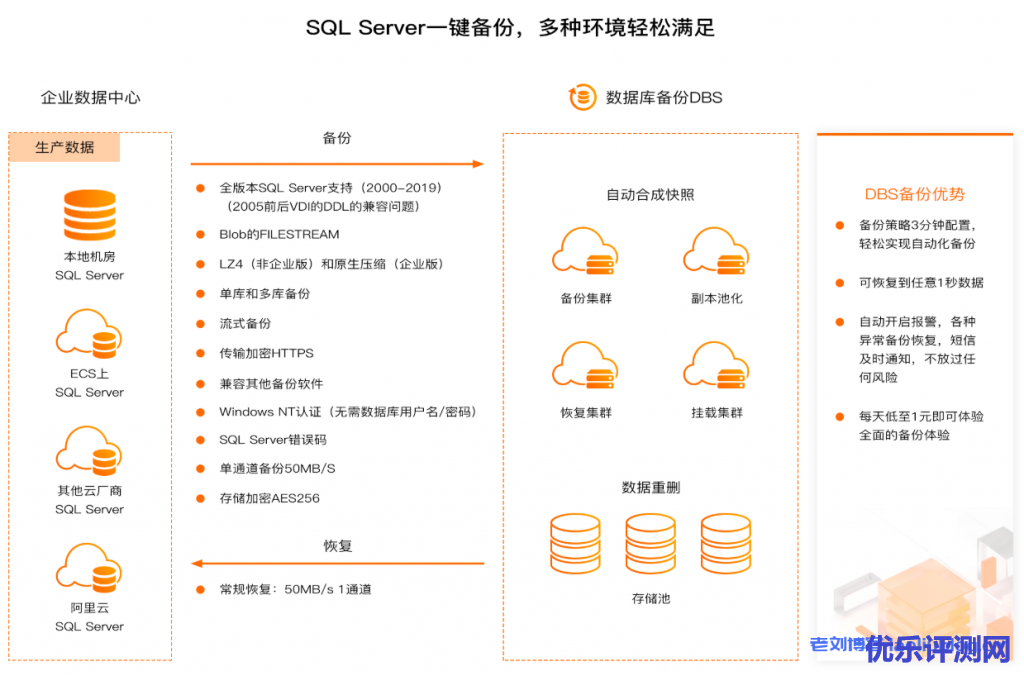 工作中最心虚的一句话:“我以为备份了”,现在这一问题被完美解决了,阿里云推出DBS(数据库备份产品),全新的数据库备份体验,让备份更简单高效。数据库备份(简称DBS)是阿里云提供的低成本、高可靠的一站式备份和恢复服务,区别于传统的备份方式,拥有丰富的功能,覆盖备份全方面要求。基础功能包括MySQL、SQL Server、Oracle等数十种热门数据库一键备份,数据秒级恢复,确保任意1秒数据安全;高阶功能包括数据跨云备份、异地备份、备份数据湖分析等!