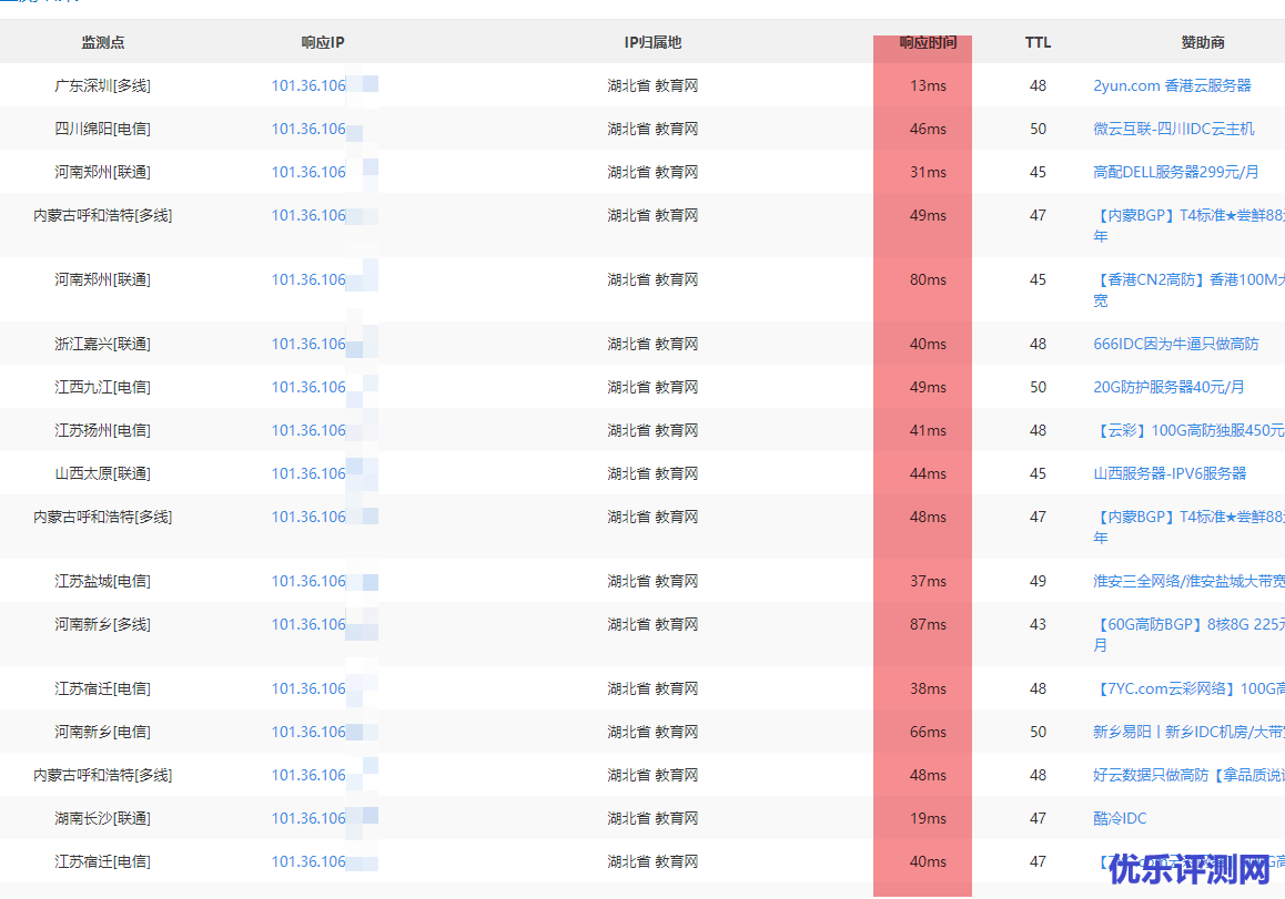 码迷认为,如果国内访问国外主机平均值高于100ms,就会影响用户体验,不利于排名稳定。所以100ms是个门槛,ping延迟高于100ms一律不要。