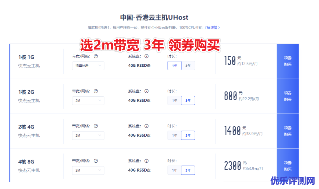 UCloud的产品经理欠揍之处在于领券之后,必须要按照配置购买,否则不能直接下单无法用券。