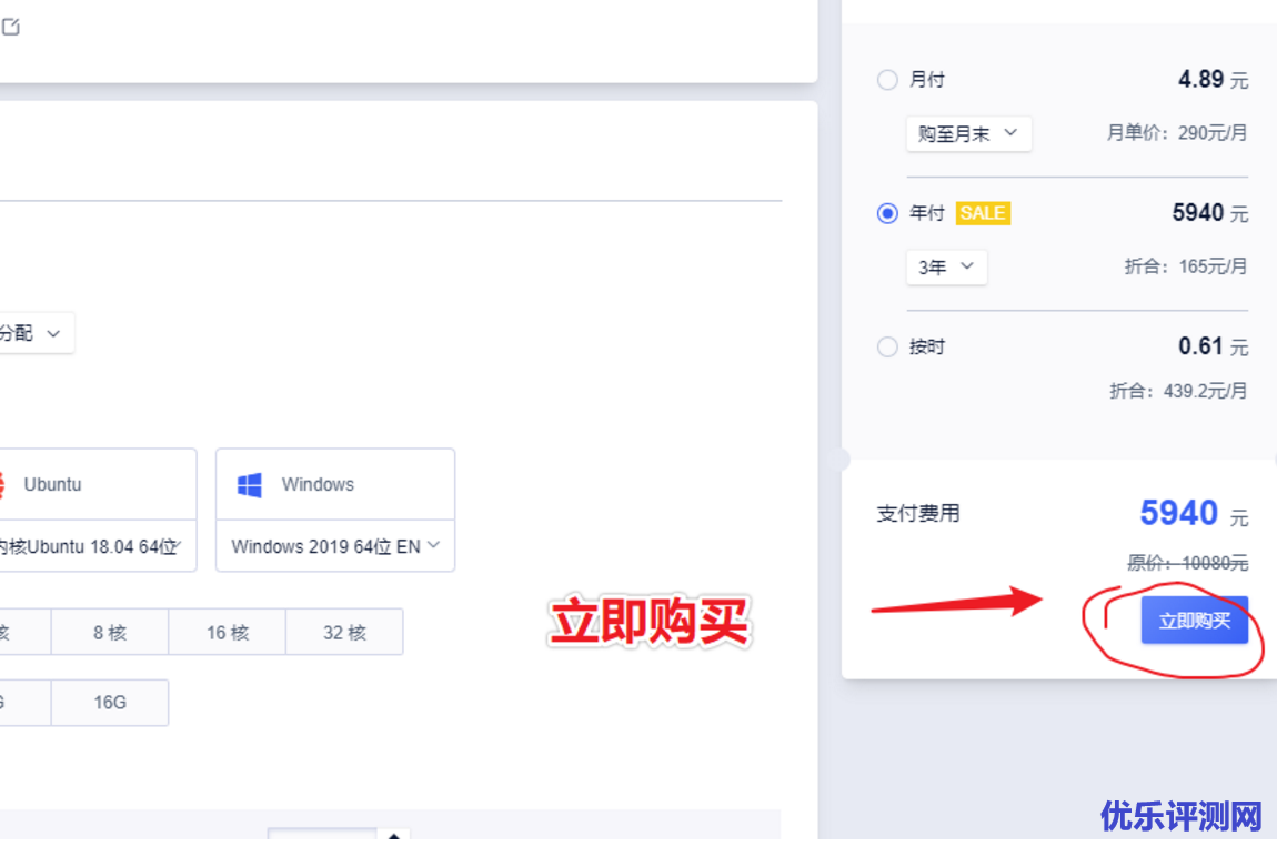 然后点立即购买。配置选择好了之后设置root密码就可以点击立即购买到“订单确认”页面了。