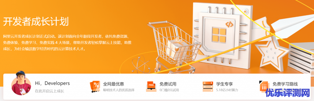 开发者专区,针对非学生用户,阿里云为开发者成长助力,全机型+全场景免费试用,超高性价比超值购买,从云上实验、建站场景到企业级应用全场景覆盖,满足不同阶段开发者所需。开发者成长计划详情>>
