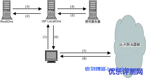 由上图可见,用户访问未使用CDN缓存网站的过程为: