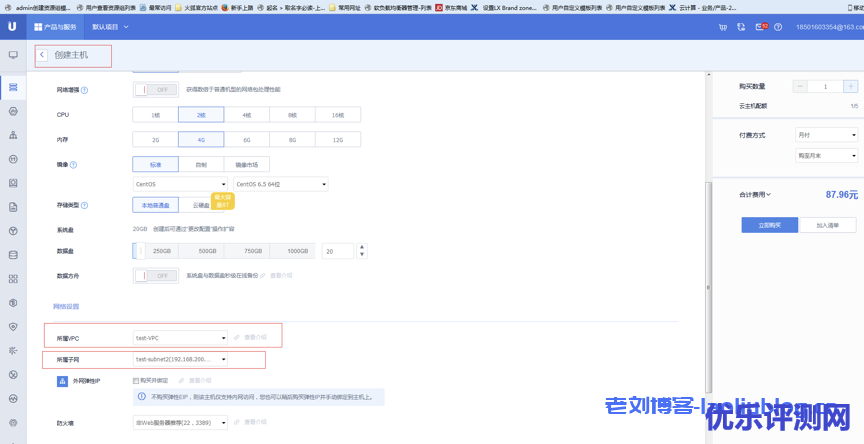 选择所属VPC和所属子网,等同于在VPC内创建云主机。