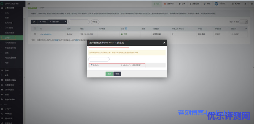 (2)公网IP分配到云主机,不论云主机是VPC内的云主机,还是独立的云主机。公网IP都只和云主机有绑定关系,跟VPC没有绑定关系。