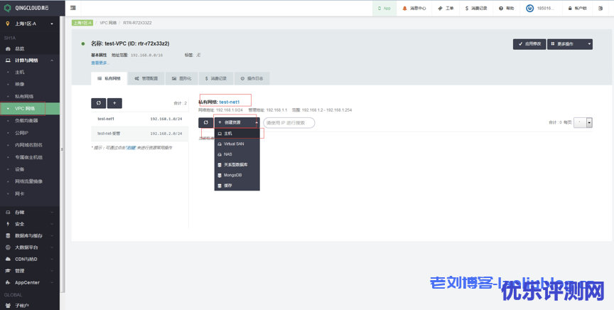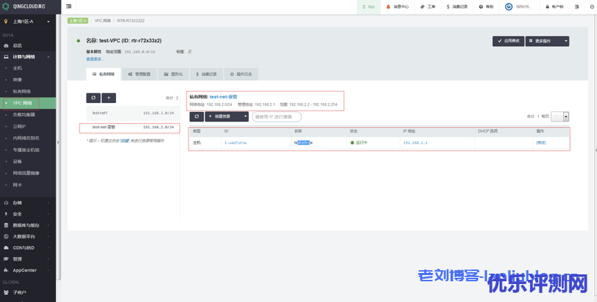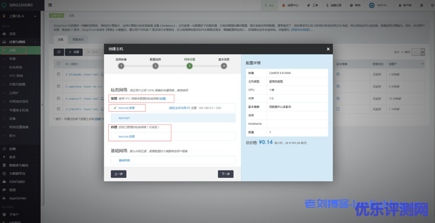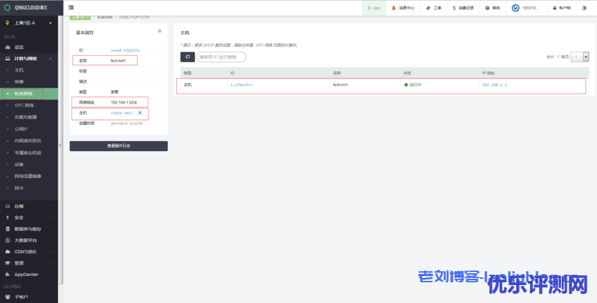 - 在VPC内私有网络tab,选择一个私有网络,然后在该私有网络内创建云主机。创建完成后,在VPC详情中对应私有网络里展示创建的云主机。
