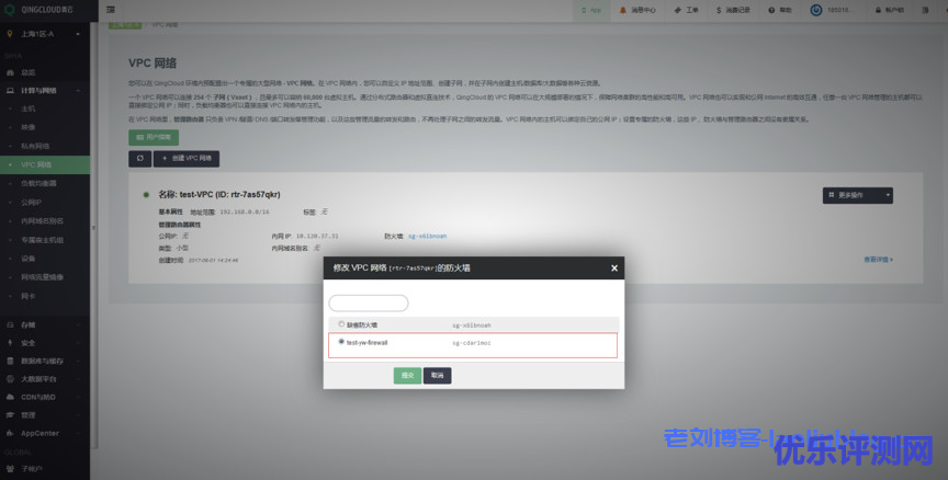 (2)应用防火墙规则到云主机,不论云主机是独立的,还是VPC内的云主机,防火墙都只和目标云主机有直接的关联关系,和VPC没有归属关系。