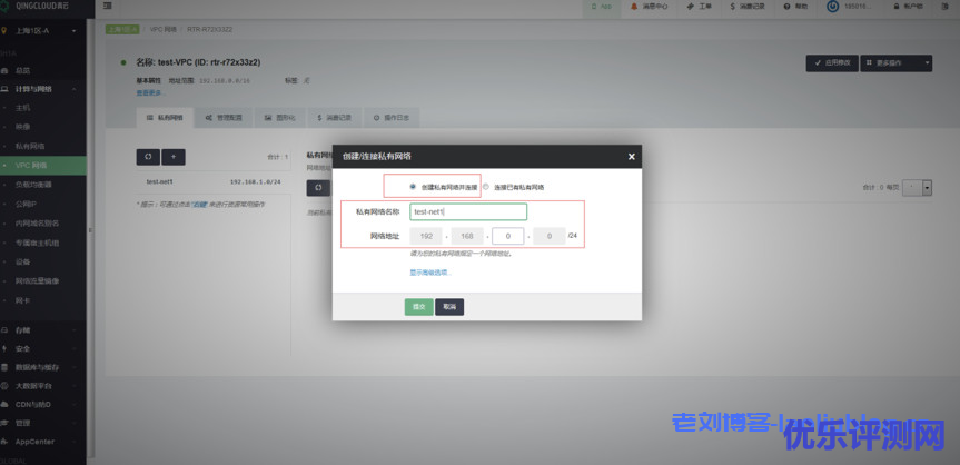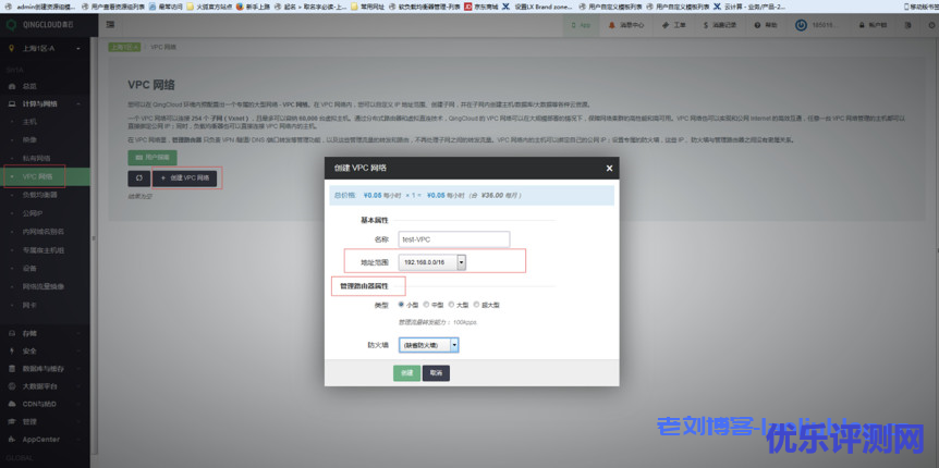 创建一个VPC网络,即创建一个路由器。路由器是随着VPC的创建默认创建好的,没有单独创建路由器的入口。