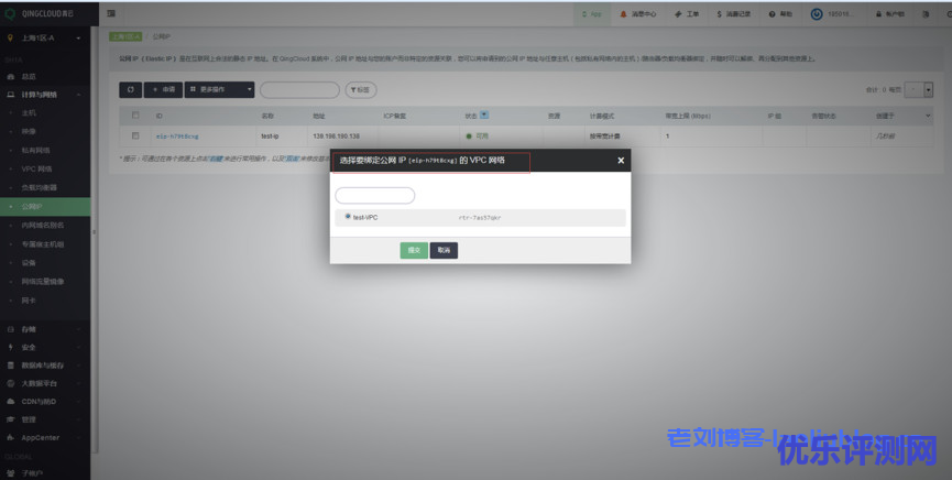 (3)公网IP绑定到VPC网络,相当于绑定到VPC的路由器上。