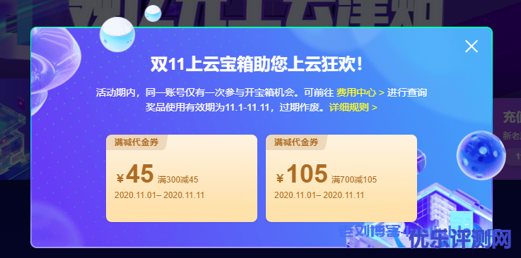 阿里云官网已实名认证的注册用户皆可参加开宝箱,新老用户同享,拼手气100%有礼,参与开宝箱,领取双11津贴吧!比如老刘开箱后的代金券金额如下图。