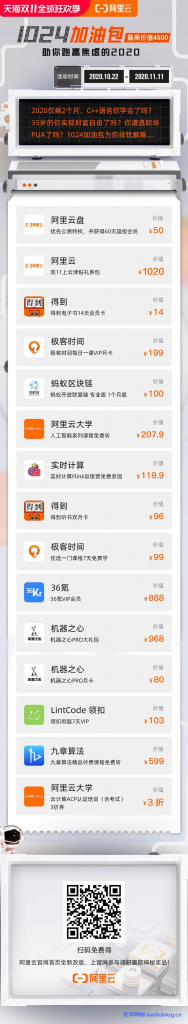 - 10月24日-10月31日:开宝箱抢津贴,1024程序员节分享赢阿里云盘VIP等大礼包