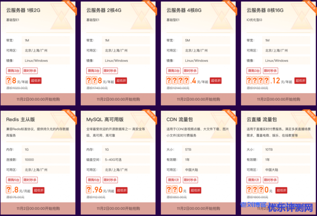 云服务器限时秒杀活动时间:2020年11月2日-2020年11月30日