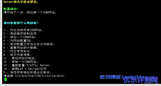 按照上面的方法,接下来就是添加和配置CDN加速网站了,你也可以重新运行命令:sudo bash OneClickCDN.sh 或者 sudo bash OneClickCDN_zh-CN.sh,如下图: