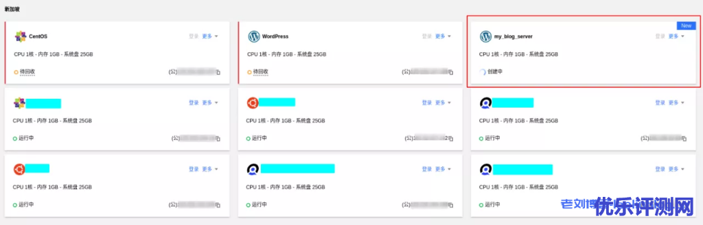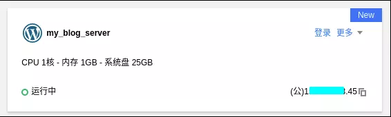 稍等片刻,服务器实例的状态会从“创建中”变为“运行中”,同时展示公网IP以及解锁了“更多”的“管理”功能: