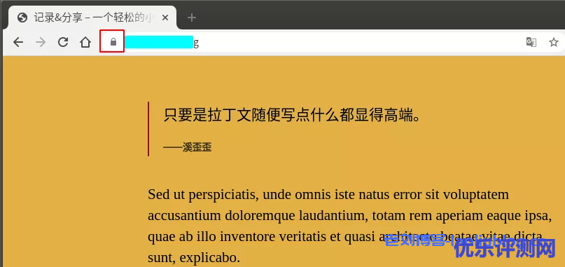通过浏览器重新访问我们的站点,可以发现访问时地址栏“加锁”的标记。至此我们完成了验证SSL证书和Nginx配置生效,大功告成!