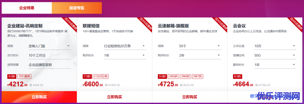华为云企业建站-讯响定制,联接短信,云速邮箱-旗舰版,云会议产品买即送200元优惠券:企业实名认证用户购买加送满201元减200元优惠券,优惠券会在活动结束后7个工作日内发放到您的账户中,优惠券有效期到2020年12月31日。