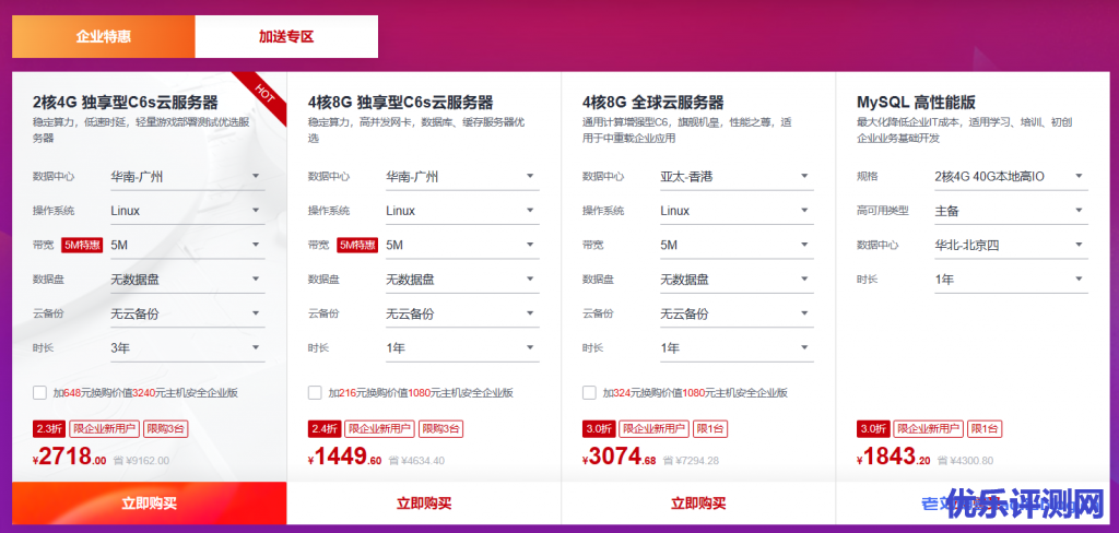 每年双11期间,企业成本考虑,都是各种买买买,今年疫情原因,降本增效动力更足,那么对比2020年云厂商双11活动,我们应该买哪家的机器呢?老刘博客这里推荐华为云2核4G独享型C6s带宽5M云服务器,华为云双11活动期间企业用户年付906元,3年付只要2718元。关于华为云的双十一促销内容,老刘前文《华为云双11活动新用户1核2G云耀云服务器首年88元再领11110元大礼包》也有描述。