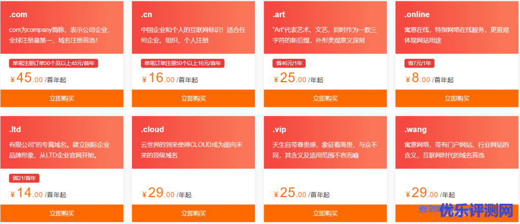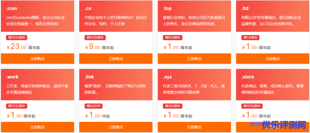 阿里云万网域名优惠升级新人有礼热门新顶级域名低至1元。.com后缀域名首年23元,.cn后缀域名首年9元,.top/.ltd/.work/.link/.xyz/.store后缀域名首年1元。