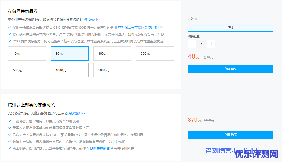 仅需1元,可购买价值50元有效期6个月存储网关商品券