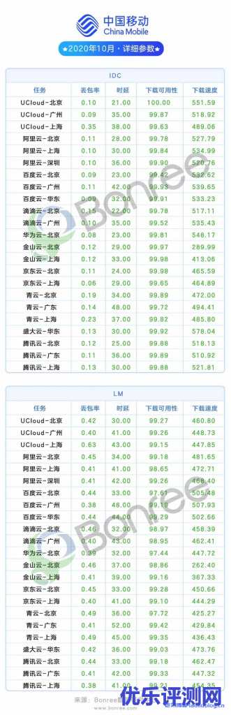 移动排行榜:此榜主要反应在中国移动运营商覆盖下,各云平台在网络稳定和传输质量上的表现。