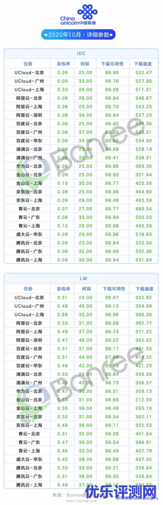 联通排行榜:此榜主要反应在中国联通运营商覆盖下,各云平台在网络稳定和传输质量上的表现。