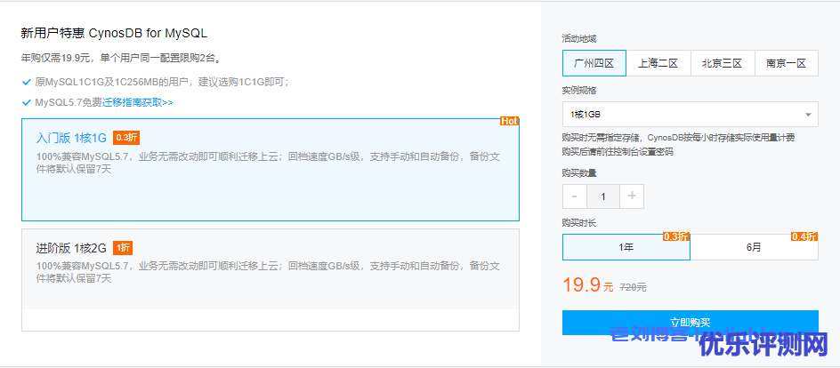 新用户特惠CynosDB for MySQL,年购仅需19.9元,单个用户同一配置限购2台。