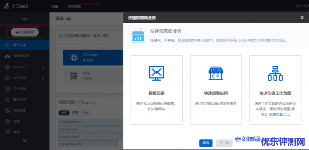 - 对于想转容器的用户,提供了镜像构建等一键容器化;通过快速部署按钮即可三步建站或部署应用。开箱即用的一套智能运维组件实现轻松运维