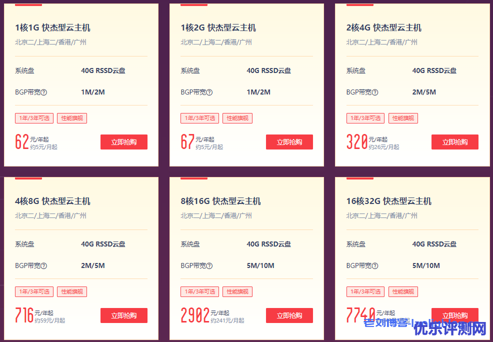 个人认证新用户相信大家很容易撸到,所以这里首先介绍的是个人专区云服务器产品。主打的快杰型云主机,目前ucloud云服务器主推的云服务器产品。有北京、上海、香港、广州四个数据中心可以选择。其中香港节点建站是无需备案的。促销配置有1核1G、1核2G、2核4G、4核8G、8核16G、16核32G,最高可以搭配10Mbps带宽,均为无限月流量云服务器!购买周期可以选择1-3年,建站用途建议选择2核4G内存5M带宽配置。