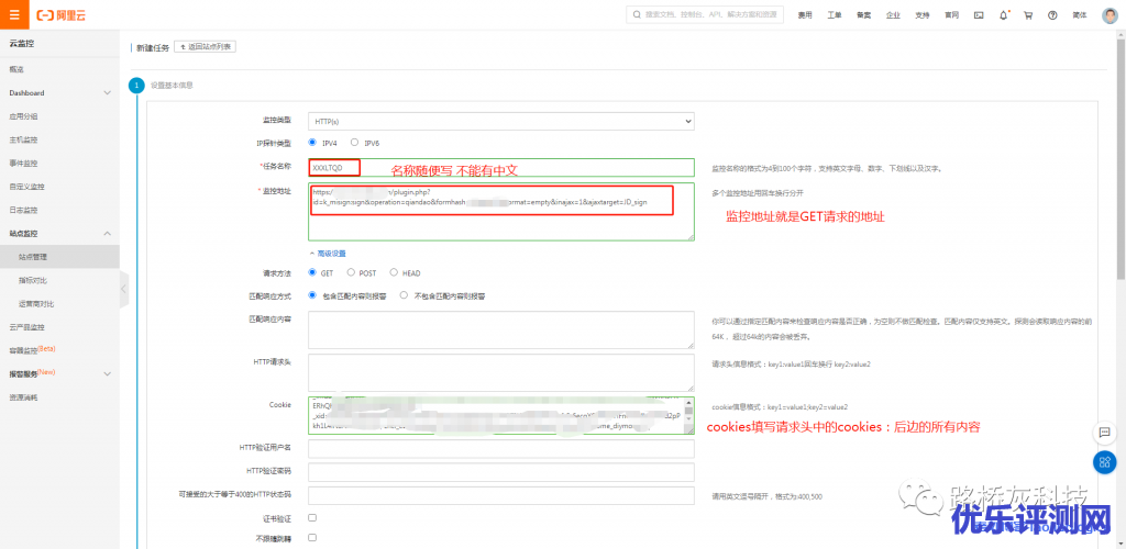 点击站点监控-站点管理-新建监控任务-点开高级选项