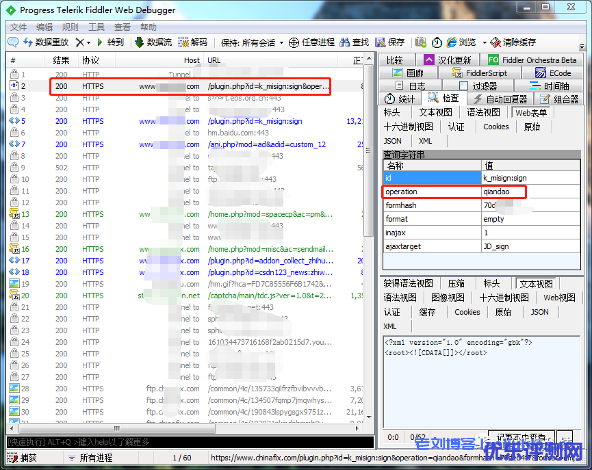 然后会出现信任证书,选择信任,最后点击确定即可。在软件运行的状态打开需要签到的网站,点击签到然后观察Fiddler抓到的请求。