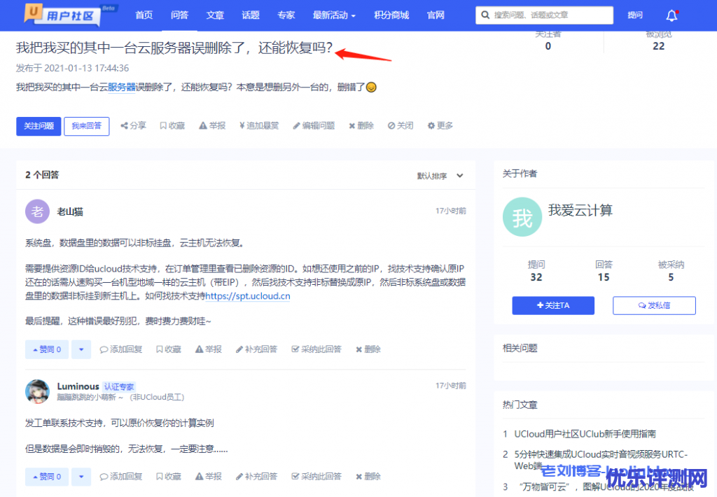 截图原文链接:https://uclub.ucloud.cn/question/1146.html