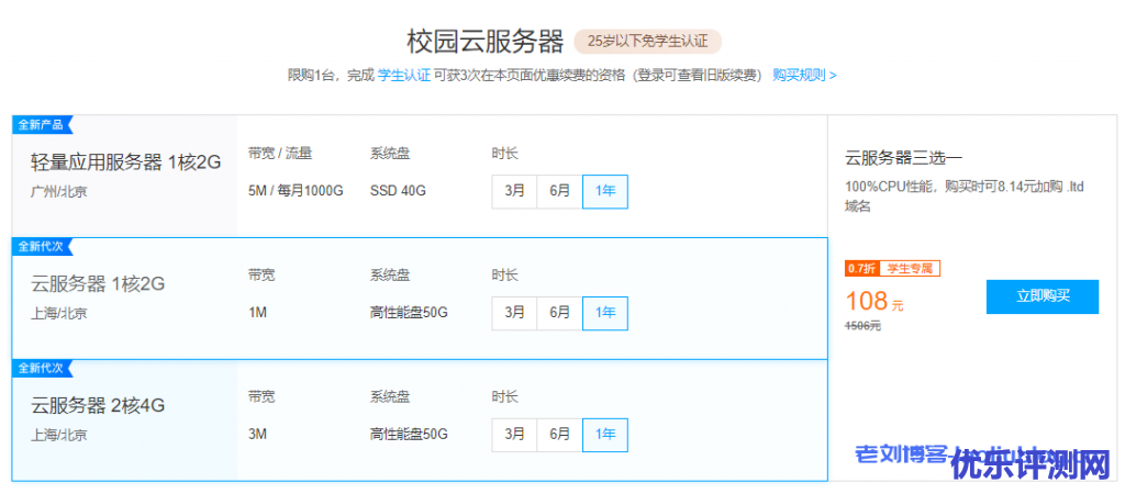 以上就是老刘博客今天要分享的腾讯云[云+校园服务器]最新活动:1核2G5M轻量应用服务器/1核2G1M云服务器CVM 9元/月,2核4G3M云服务器CVM 39元/月,25岁以下免学生认证的全部内容,更多详情访问活动页面https://curl.qcloud.com/845h8QOx了解。