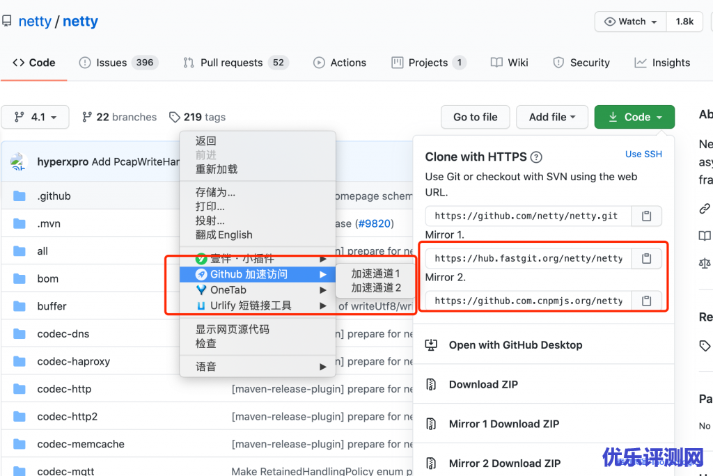 一键加速 Github 访问速度,当 Github 访问慢的时候点击右键直加速,同时支持多个加速镜像。