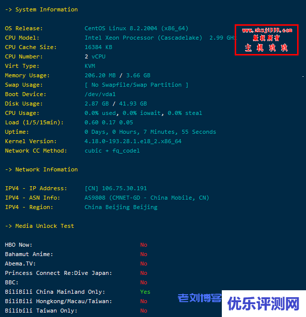1、UCloud北京快杰云主机S型基本信息测试。2.99Ghz的主频,KVM架构。