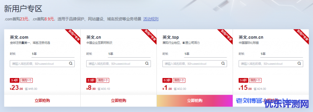 华为云域名特惠专场新用户.com首购23元 |.cn首购8.9元|免费SSL证书|免费云解析活动规则: