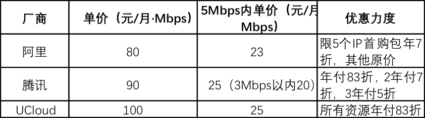 因此,我决定对比一下阿里云、UCloud、腾讯云三家网络带宽产品的性能和价格来进行最终选型,希望以下内容能给大家一些参考。